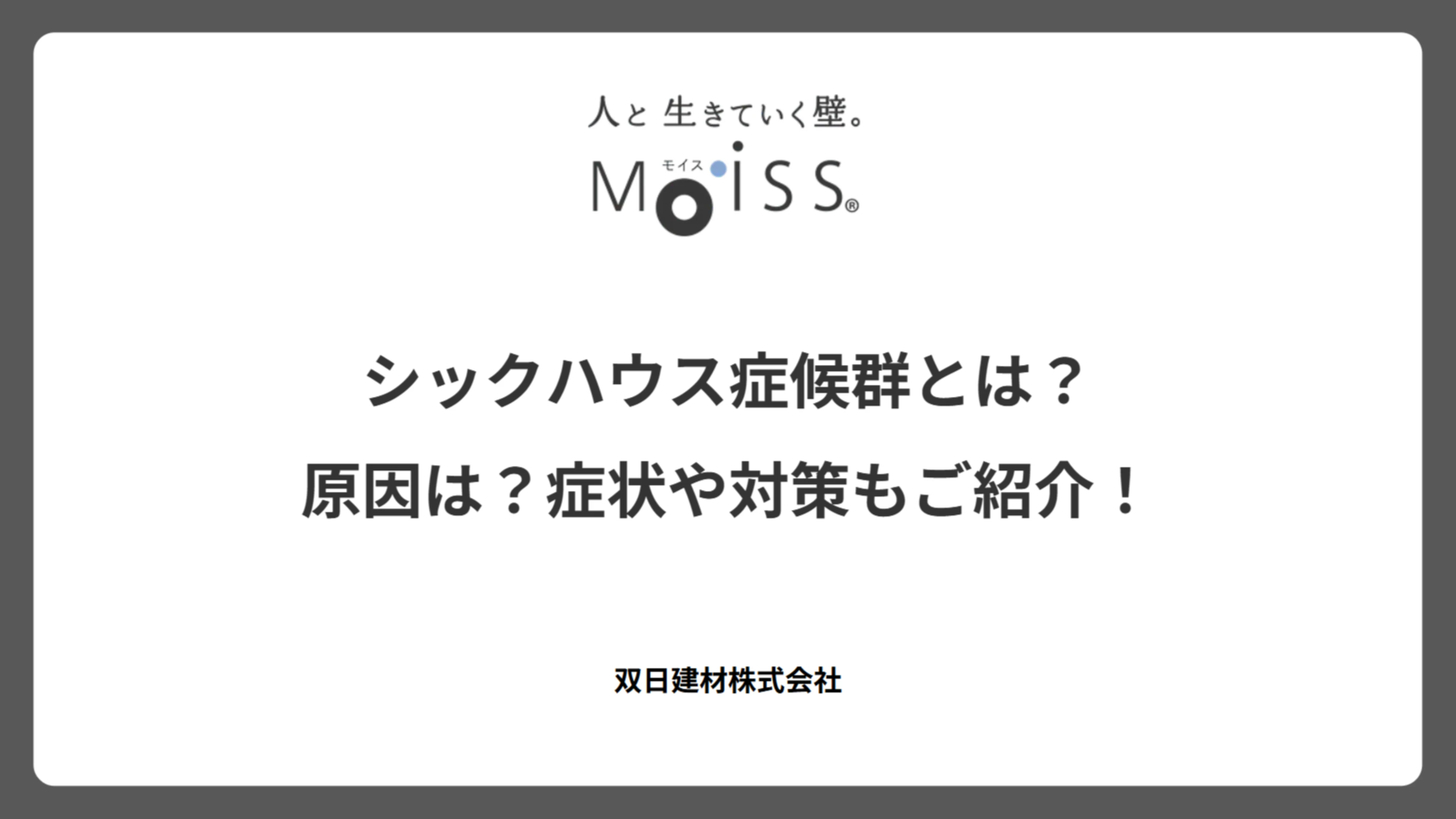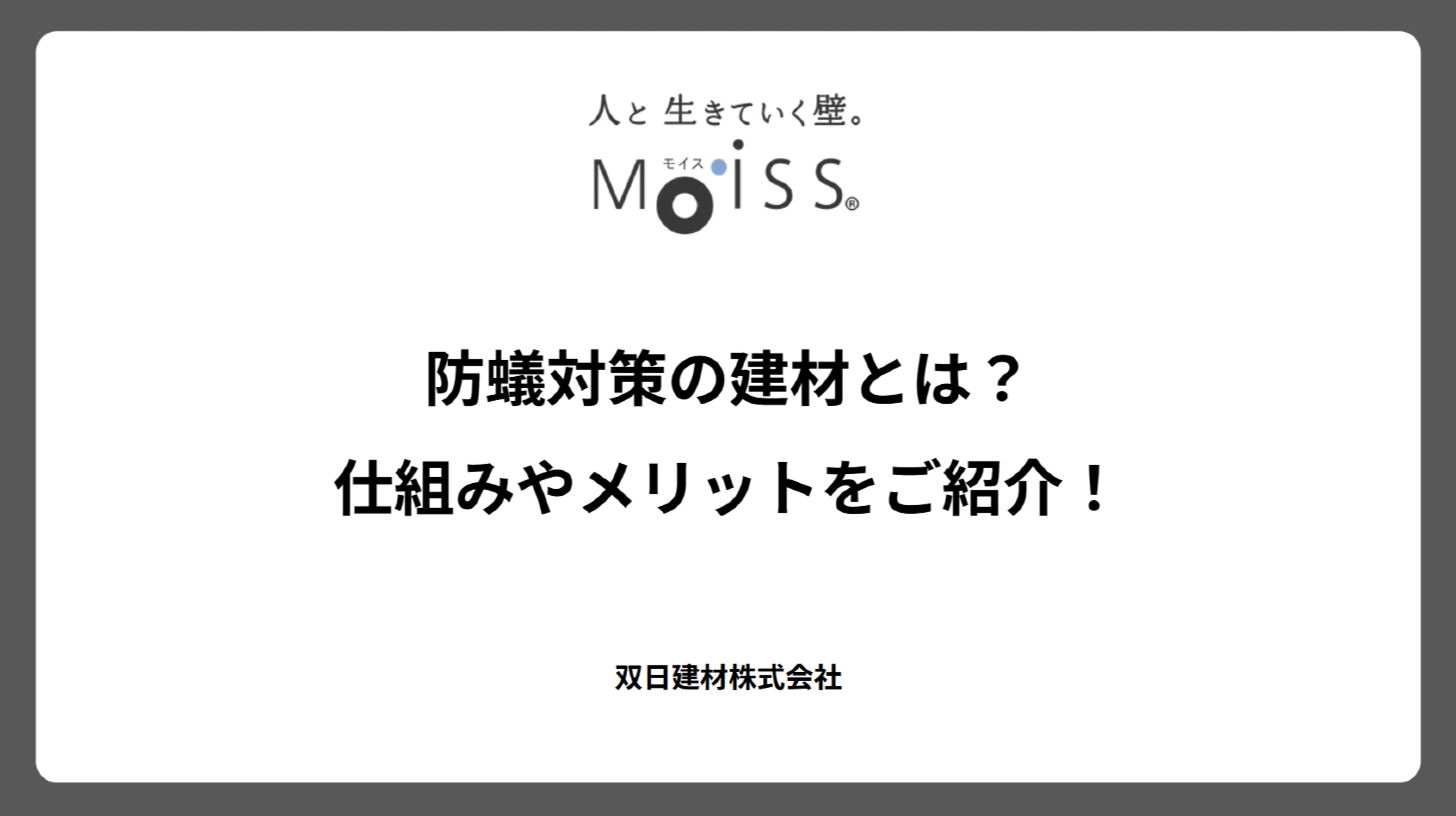 WEBカタログ MOISSの製品詳細や施工マニュアルなど、各種カタログをダウンロードできます。郵送をご希望の方もこちらから。