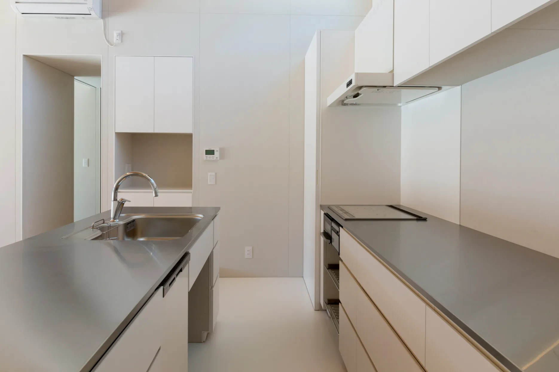 キッチン調理台奥と棚の下側もMOISSで調湿