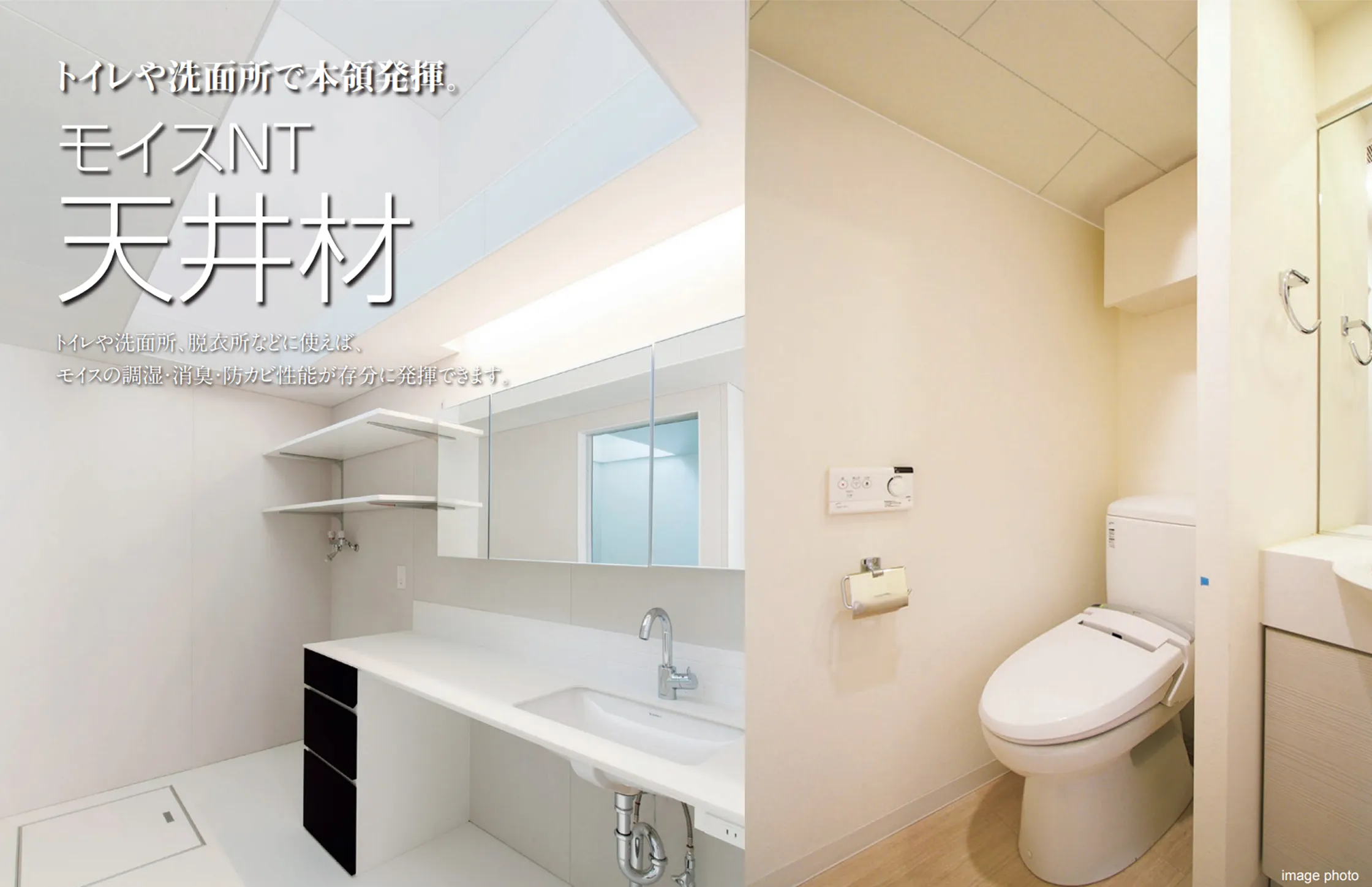 調湿・消臭機能などを発揮できる、住宅のトイレの天井材にオススメ。