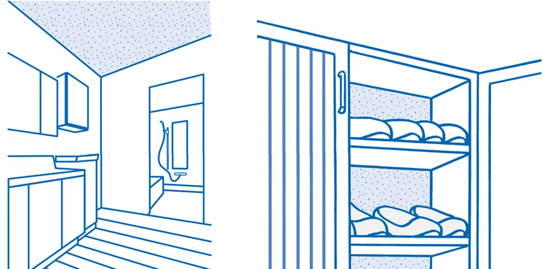 トイレや洗面所・脱衣所などニオイや 雑菌が気になる箇所に、モイスの消臭・ 抗菌・防カビ性能がおすすめです。
