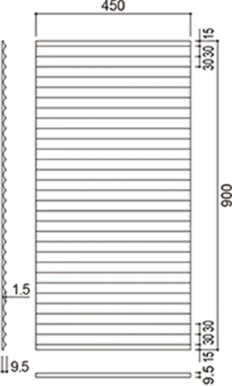 | VNR1539D△△ | ¥58,500 / 梱包(¥36,120/m²) | 450 × 900 | t9.5mm | 4枚 / 梱包 (1.62m²) |